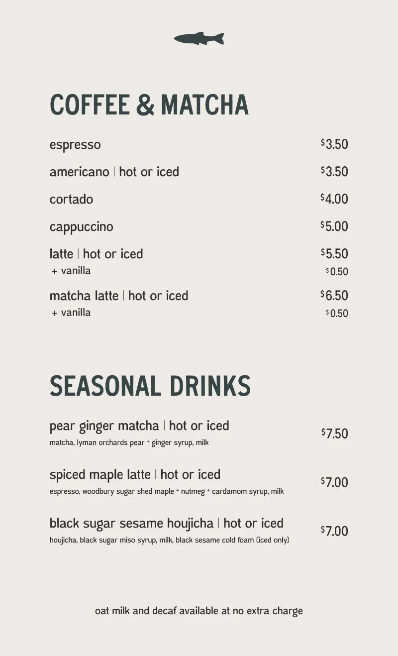 Minnow is a considered specialty coffee experience in a small, mobile footprint - espresso and matcha, seasonal drink specials made with fresh + local ingredients, and the occasional baked treat, served from our custom cafe cart at pop-ups and events all around the Valley. That’s the gist, anyways.